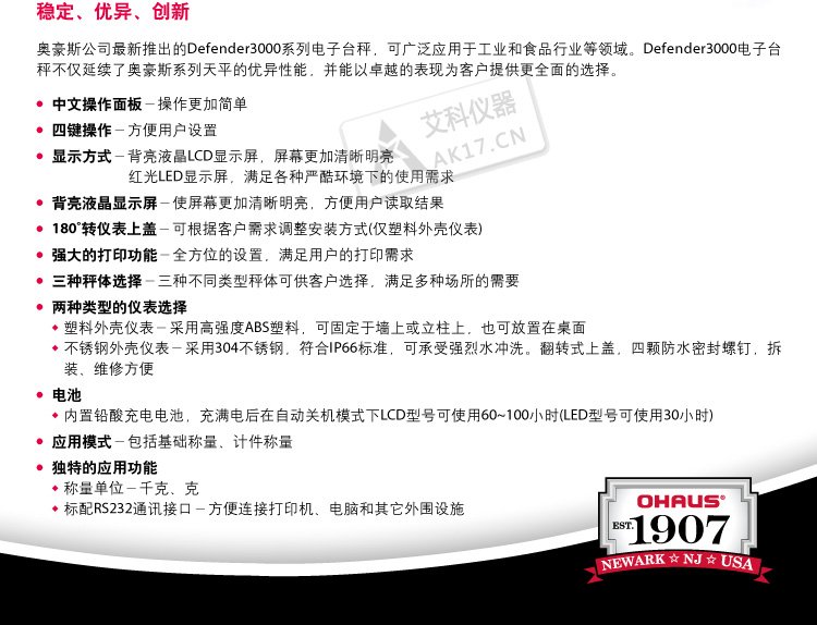 奧豪斯防水臺秤D32XW60VLZH 電子平臺稱地磅秤60kg/0.02kg產品介紹