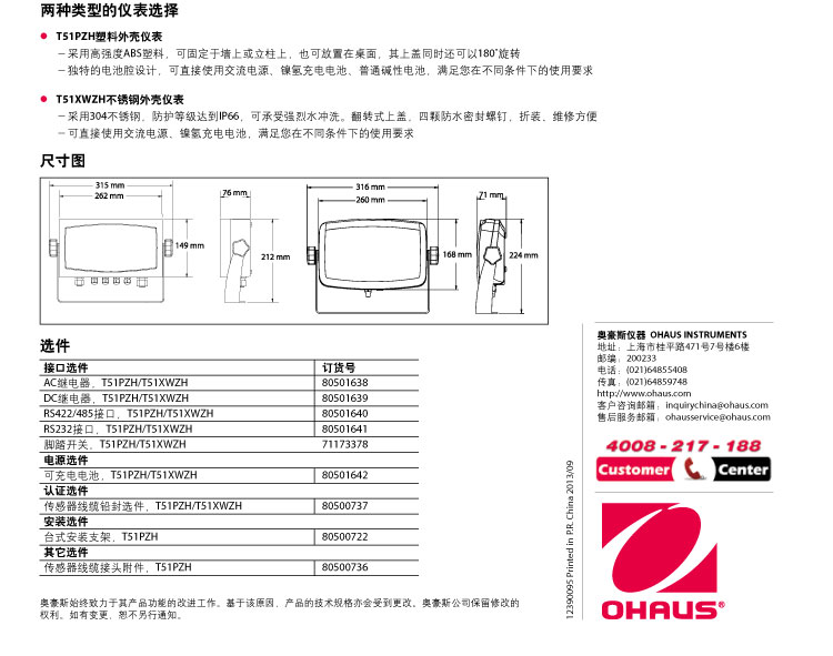 奧豪斯平臺秤儀表T51XWZH不銹鋼防水儀表產品介紹