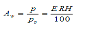 水分活性的定義:在一溫度下,溶液狀的水分或食品中水分的蒸汽壓與相同一溫度下純水的蒸汽壓的比值,即: