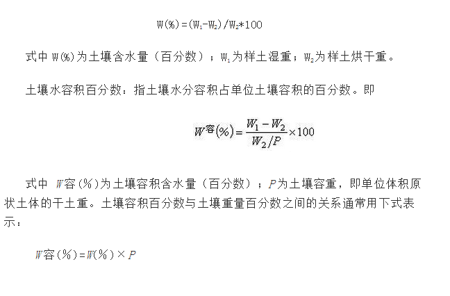 土壤水重量百分數:土壤中實際所含的水分重量占烘干土重量的百分數。即