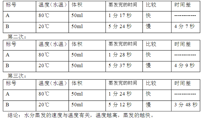 實驗1、水分蒸發(fā)的速度可能與水溫有關 **次: