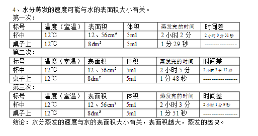 4、 水分蒸發(fā)的速度可能與水的表面積大小有關。 5、