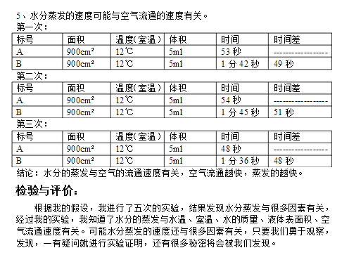5、水分蒸發(fā)的速度可能與空氣流通的速度有關。