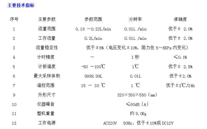 3 、帶實時時鐘,可設定定時/即時采樣 4 、自動計算標況采樣體積 5 、停電再來電時自動恢復采樣 6 、采樣數據自動記憶 7 、軟件標定功能 8 、用戶密碼保護